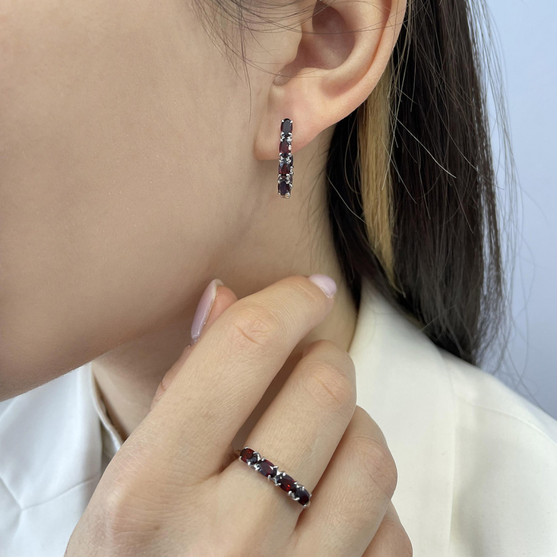 Комплект серьги (Арт. 2340151164) и кольцо (Арт. 1340151164) из серебра с гранатами из коллекции Bliss