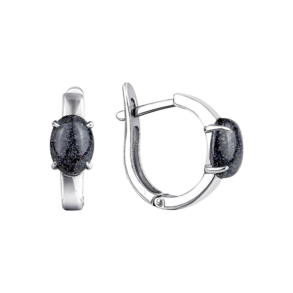 Серьги из серебра с авантюринами из коллекции Уральские самоцветы (Арт. 2340361878)