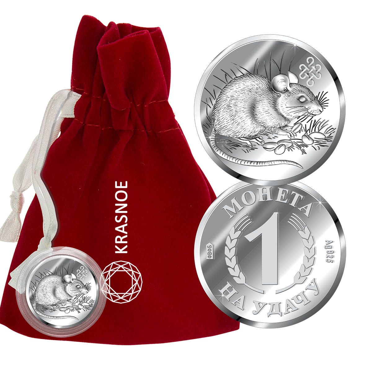 Серебряная монета с изображением Мыши (Крысы). Символ года