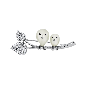 Брошь для женщин из серебра 925 пробы с эмалью,жемчугами,,фианитами артикул 6R024055 от компании KRASNOE