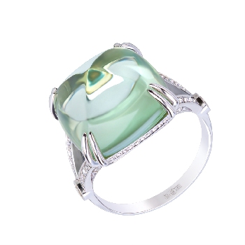 Кольцо с празиолитом и россыпью бриллиантов. Празиолит - уникальный минерал, огранака sugarloaf.