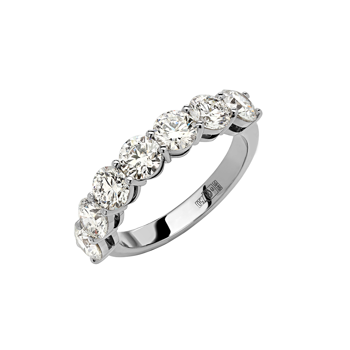 Эстетика белого золота, манящее холодным блеском металла. 7 бриллиантов , обрамляющих шинку кольца. Неустаревающая классика в своем самом совершенном исполненении. Кольцо может быть помолвочным, обручальным, а также просто шикарным подарком без повода или на любое другое важное событие. Неважно, зачем и почему вы преподнесете этот великолепный подарок. Неизменным останется то, что оно гарантированно вызовет самые теплые чувства счастливой обладательницы
