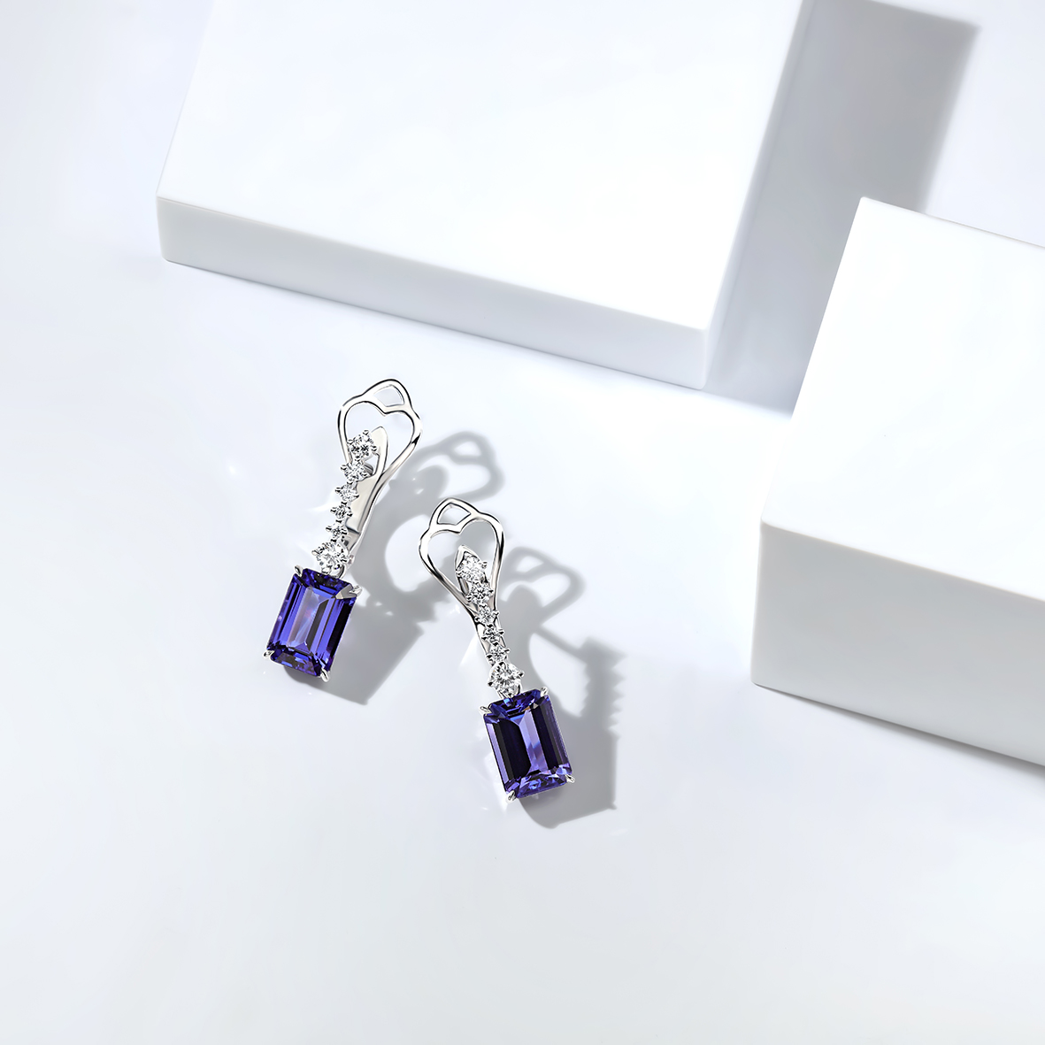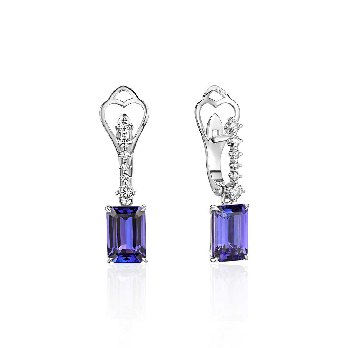 Невероятно изящные серьги с танзанитом и бриллиантами.
