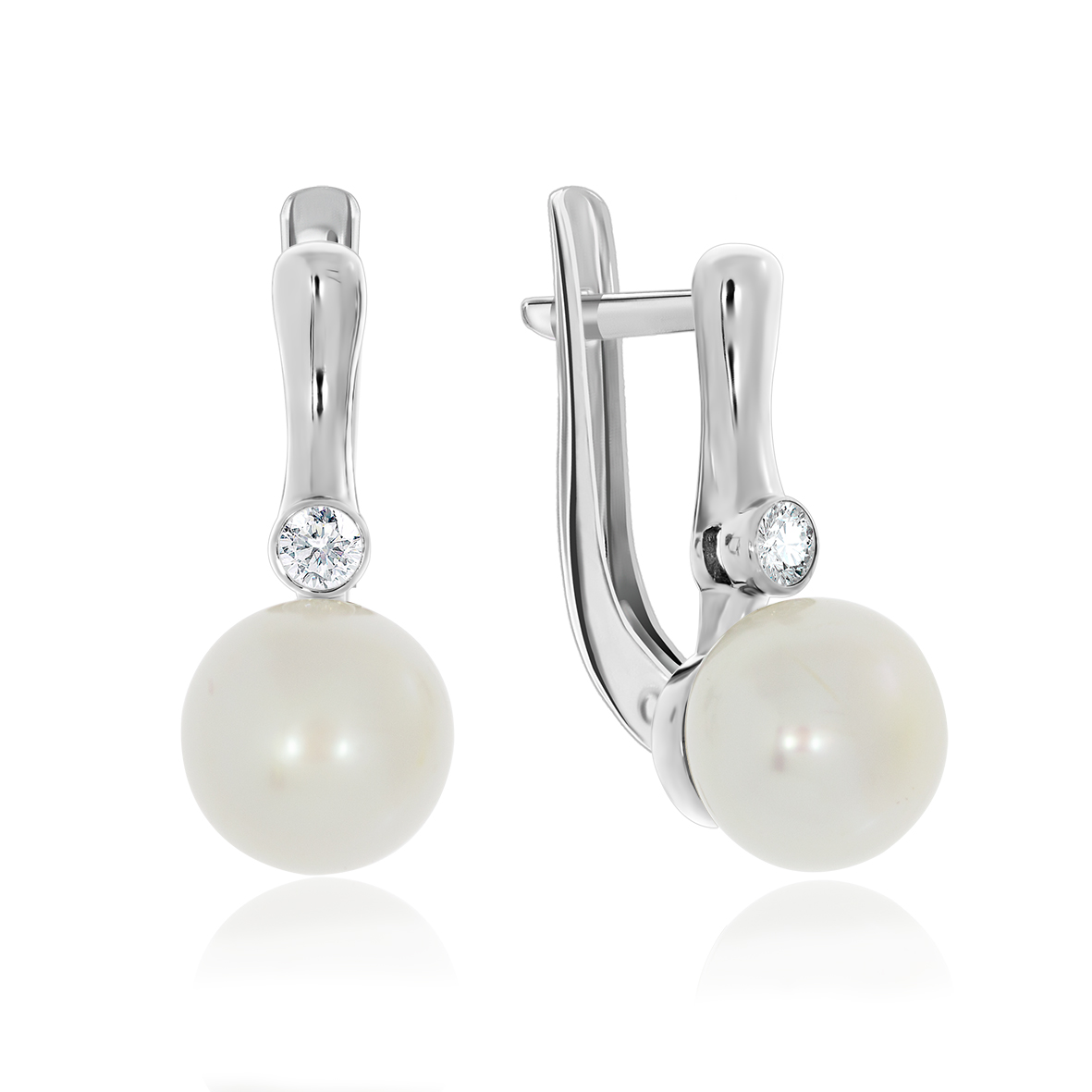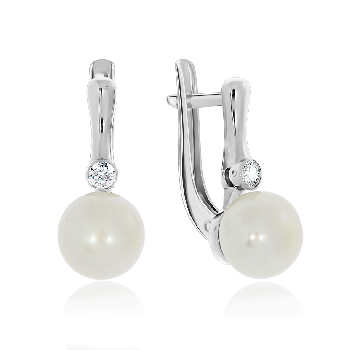 Серьги для женщин из серебра 925 пробы с жемчугом,фианитами из коллекции Афродита артикул 2340050834л от компании KRASNOE