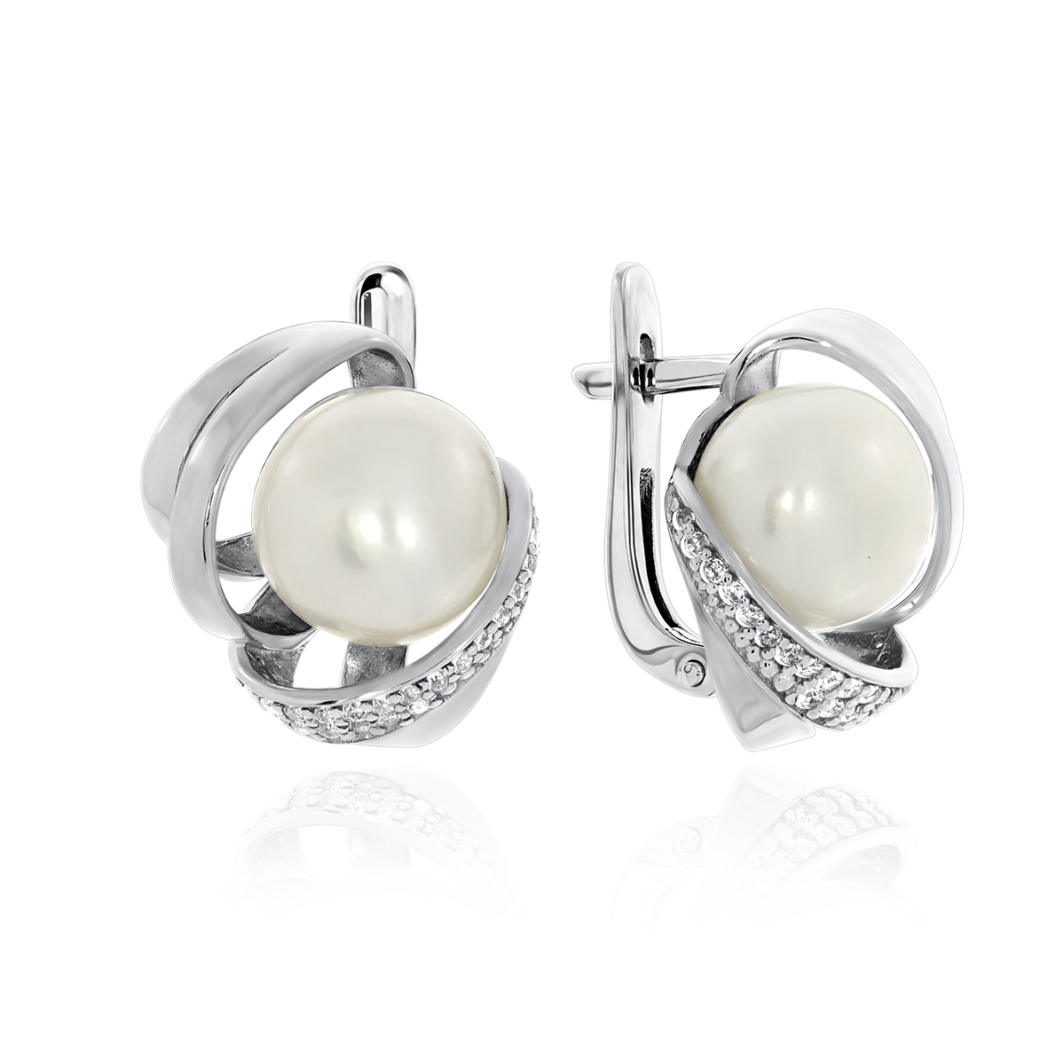 Серьги для женщин из серебра 925 пробы с жемчугами из коллекции Афродита артикул 2340050861-2 от компании KRASNOE