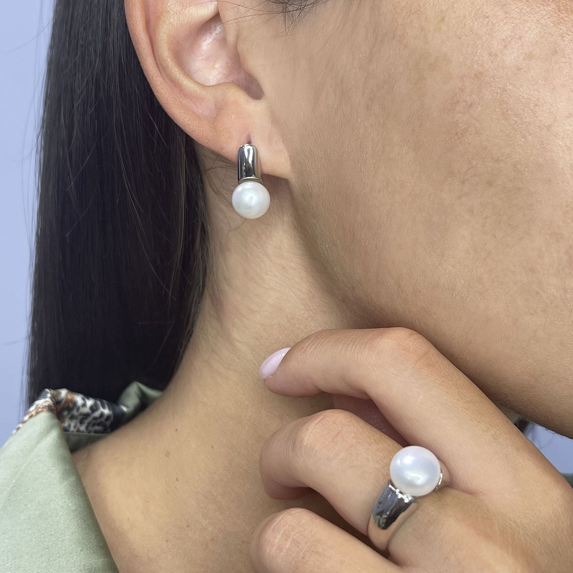 Серьги из серебра 925 пробы с жемчугом пресноводным в классическом дизайне из коллекции "Афродита" Серьги-изящные украшения, лаконичный вариант как на каждый день, так и для выхода. Подходит, если вы хотите сделать акцент на лице, не перегружая образ. Такая конструкция является одновременно и практичной, и красивой. Они подходят к любой форме лица, способны украсить любой образ. KRASNOE - нежные и трендовые украшения из серебра 925 собственной разработки, дизайна и производства для красоты твоих будней! В коллекцию ювелирного бренда KRASNOE входят пусеты, колье-чокеры и галстуки, джекеты, серьги-трансформеры, а также яркие детские изделия.Длинна серьги 1.8см Размер камня 10мм.