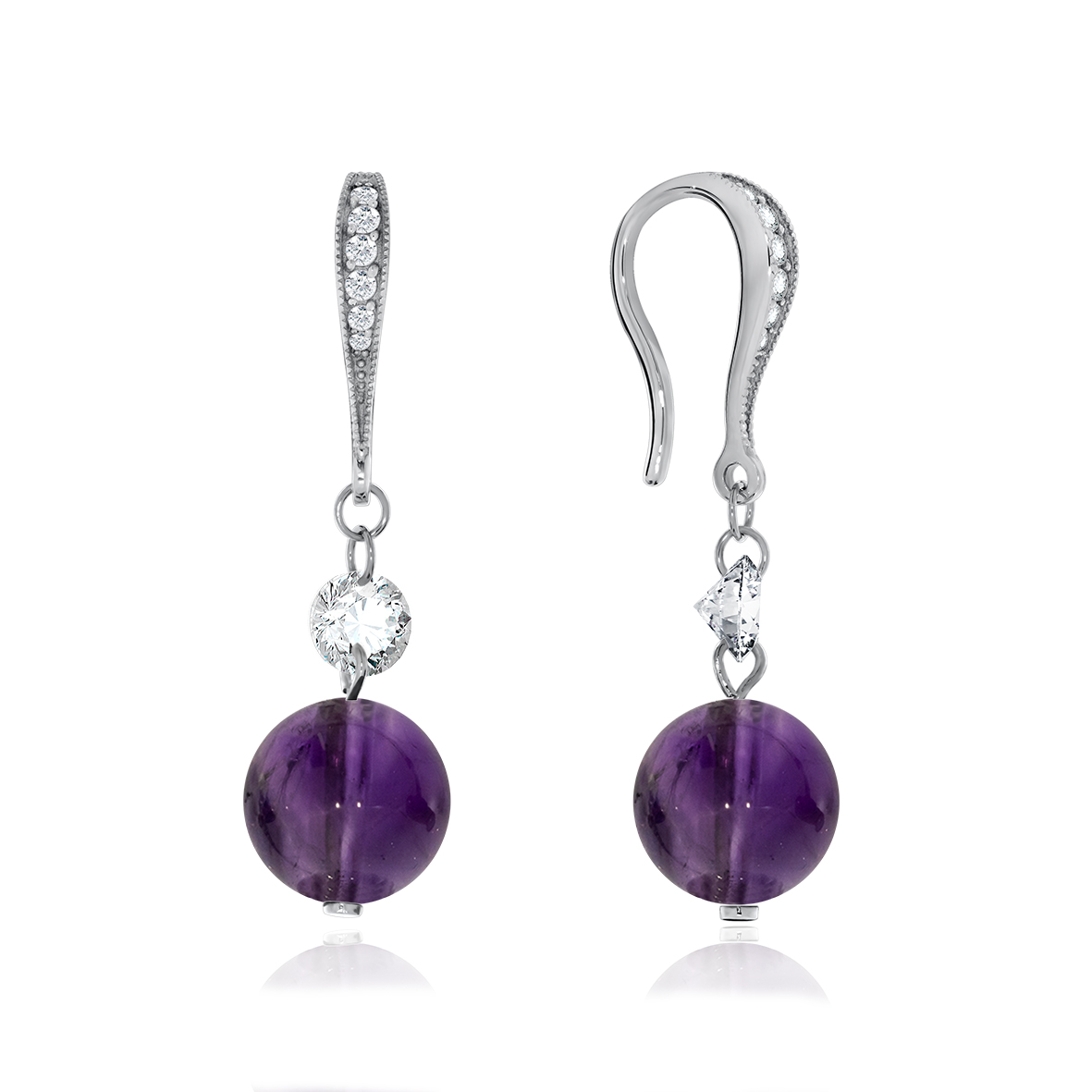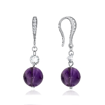 Серьги для женщин из серебра 925 пробы с аметистами,фианитами из коллекции Невесомость артикул 2340060612 от компании KRASNOE
