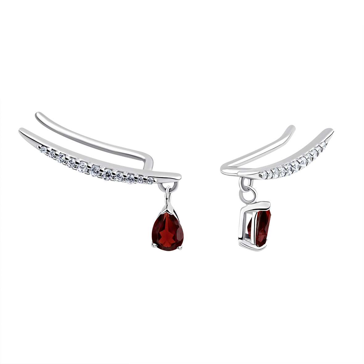 Серьги для женщин из серебра 925 пробы с гранатами,фианитами из коллекции Modniy look артикул 2340154903л от компании KRASNOE
