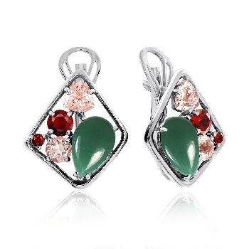 Серьги для женщин из серебра 925 пробы с авантюринами,фианитами,,ситаллами из коллекции Сладкая история артикул 2340361179-1-60 от компании KRASNOE
