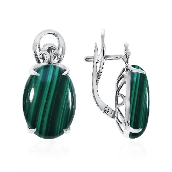 Серьги для женщин из серебра 925 пробы с малахитами из коллекции Уральские самоцветы артикул 2340380112 от компании KRASNOE