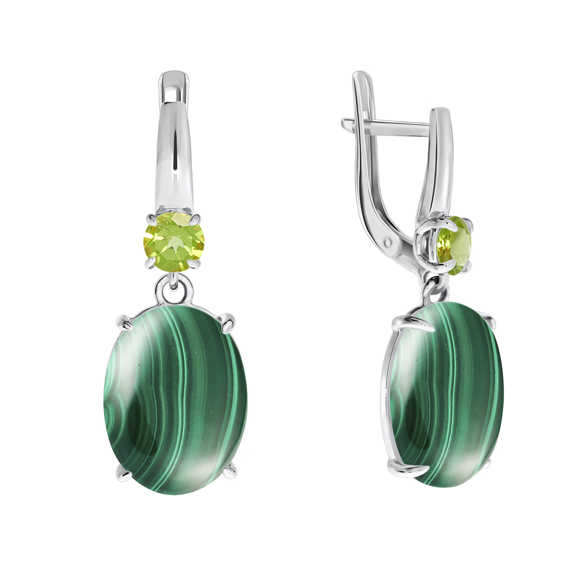 Серьги для женщин из серебра 925 пробы с ситаллами,малахитами из коллекции Уральские самоцветы артикул 2340380512-65 от компании KRASNOE