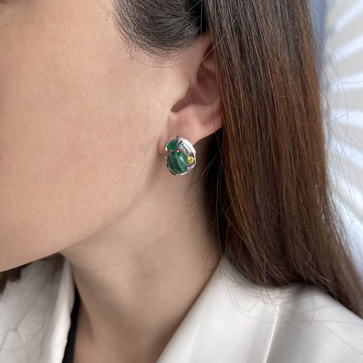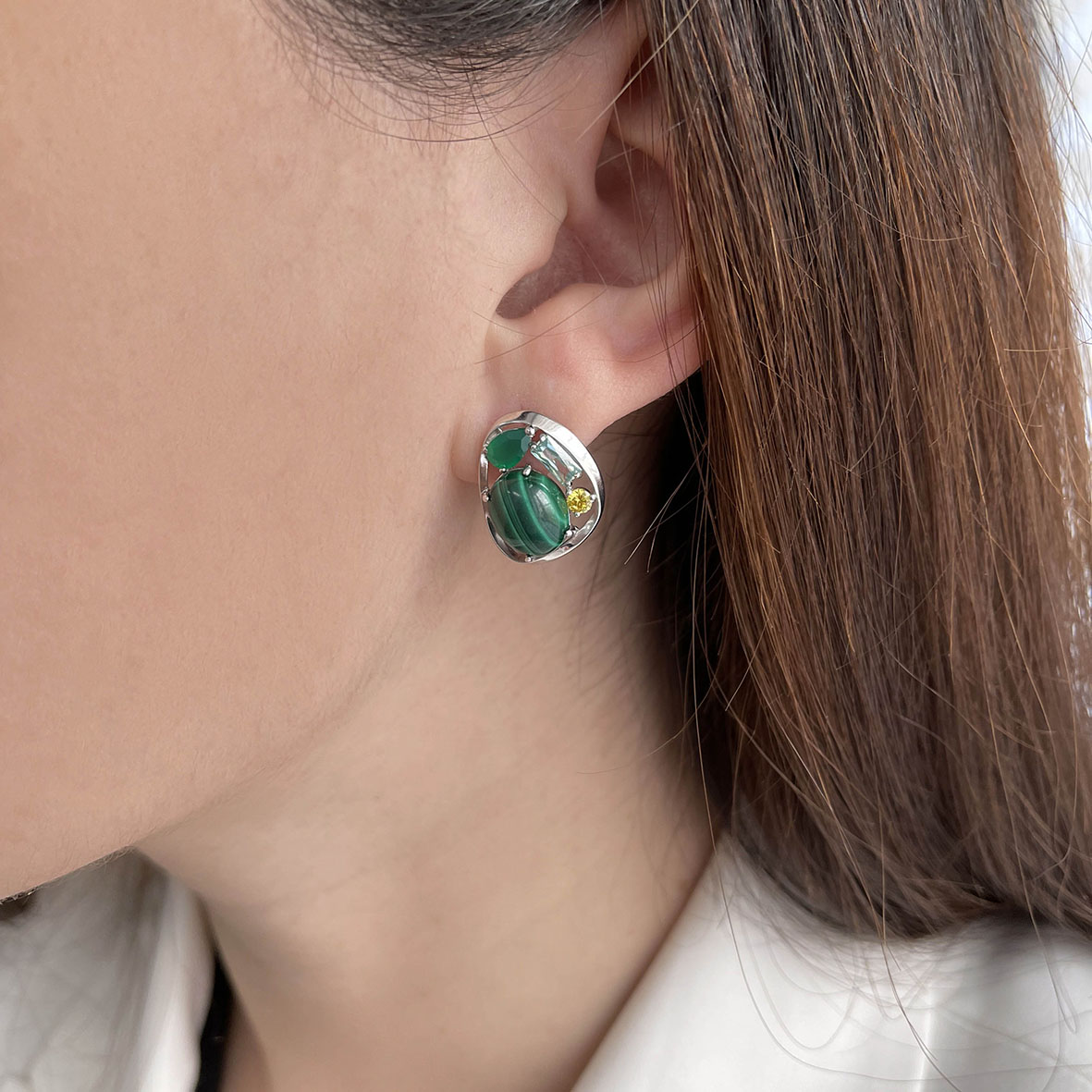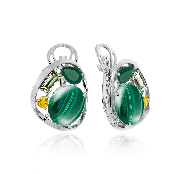 Серьги для женщин из серебра 925 пробы с агатами,малахитами,,фианитами из коллекции Сладкая история артикул 2340381168-1 от компании KRASNOE
