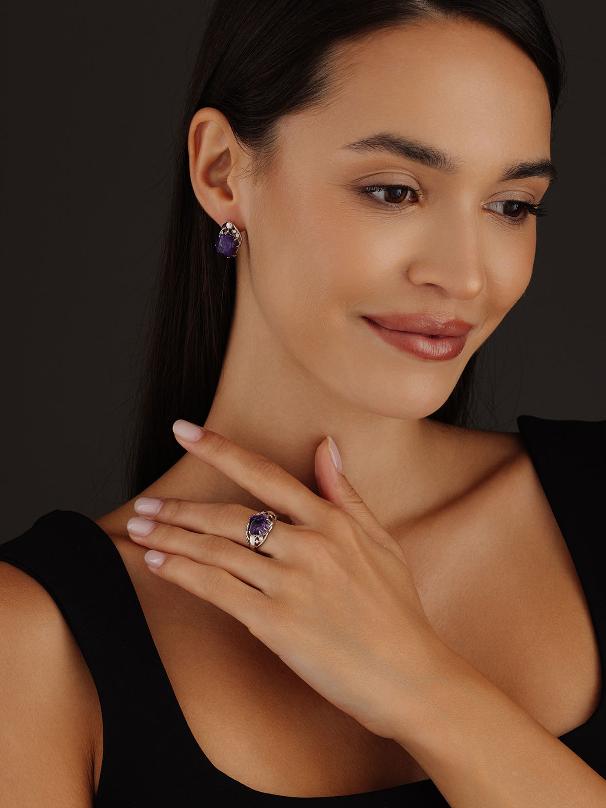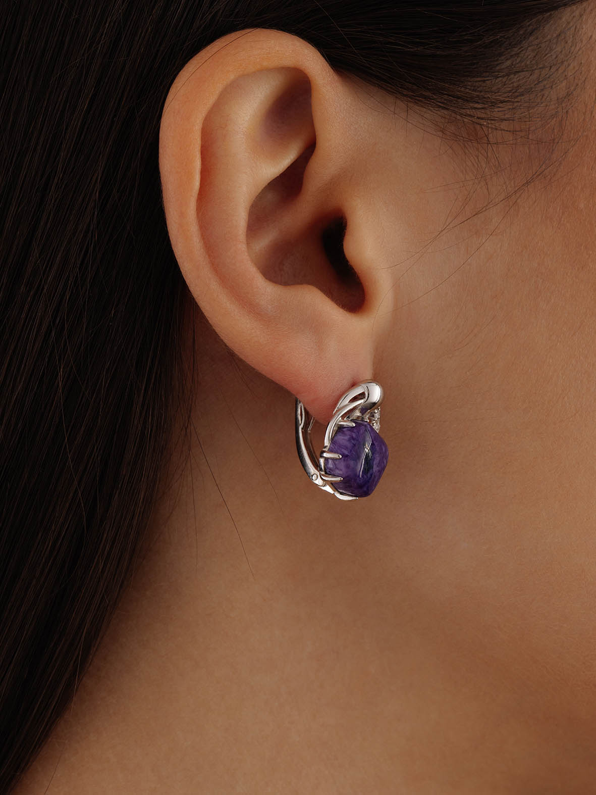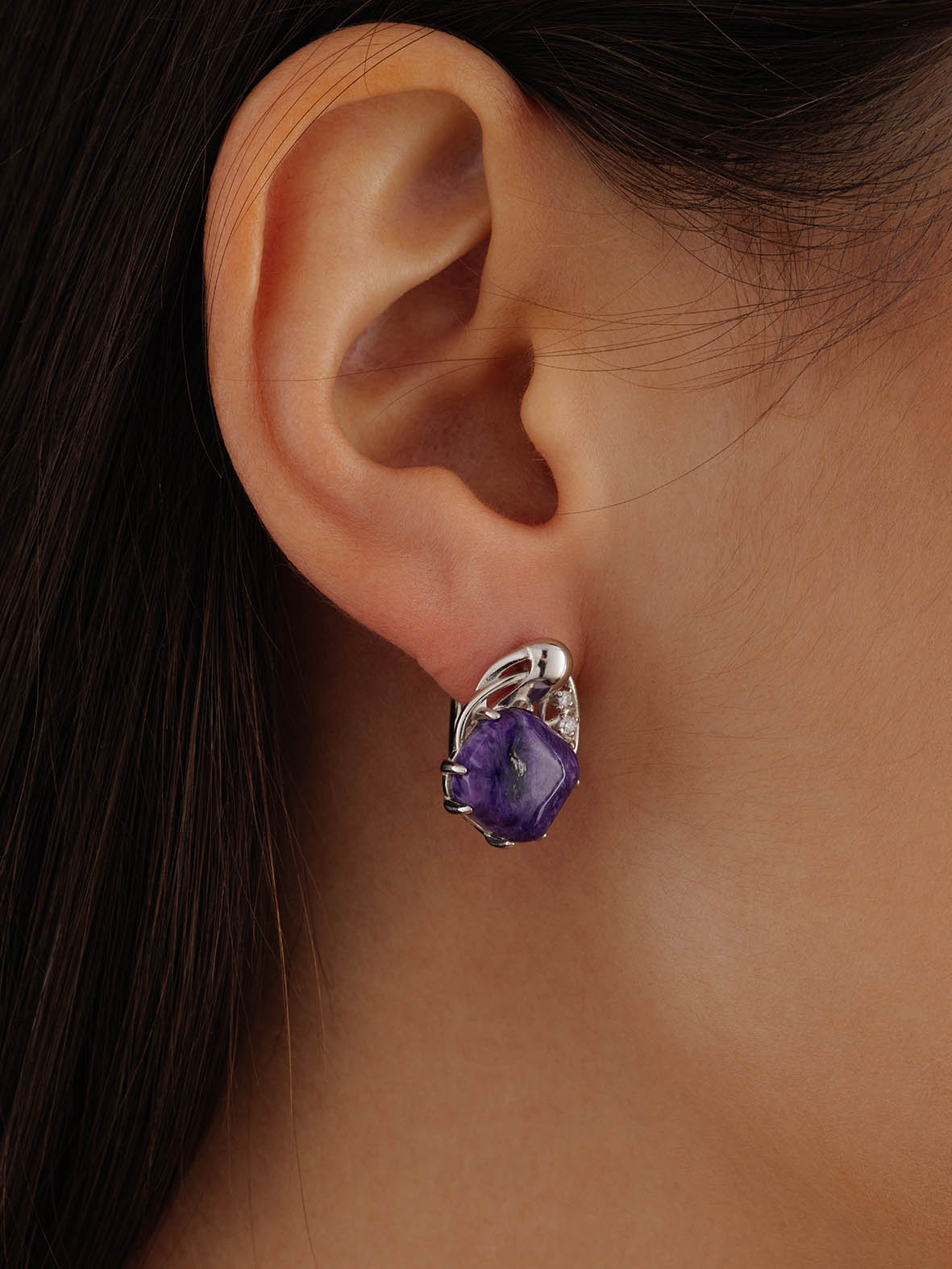 Серьги для женщин из серебра 925 пробы с чароитами,фианитами из коллекции Fancy артикул 2340460984 от компании KRASNOE