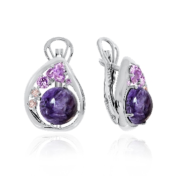 Серьги для женщин из серебра 925 пробы с чароитами,ситаллами,,фианитами из коллекции Сладкая история артикул 2340461173 от компании KRASNOE