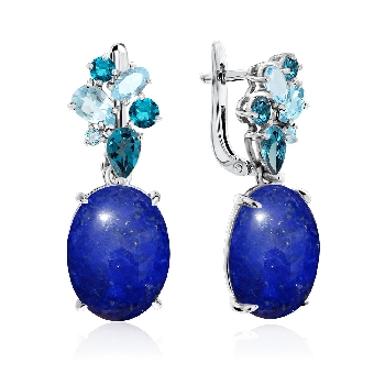 Серьги для женщин из серебра 925 пробы с лазуритами,ситаллами из коллекции Уральские самоцветы артикул 2340470874-76 от компании KRASNOE