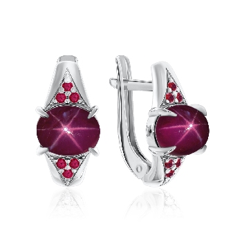 Серьги для женщин из серебра 925 пробы с рубинами звездчатыми,ситаллами из коллекции Созвездие артикул 2340940372л-37 от компании KRASNOE