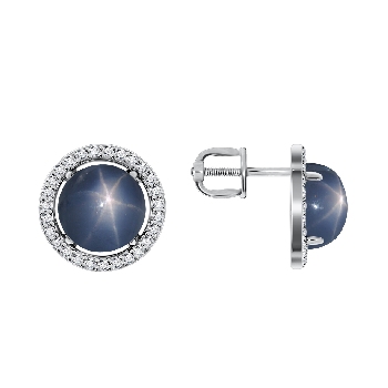 Пусеты для женщин из серебра 925 пробы с сапфир звездчатыйами,фианитами из коллекции Уральские самоцветы артикул 2340942055-8 от компании KRASNOE