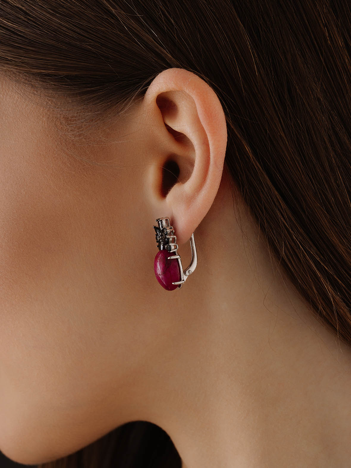 Для любителей натуральных камней и цветов мы создали коллекцию ювелирных украшений "Уральские самоцветы". Сочетания минералов, цепляющие дизайны и сила природы лежат в каждой частичке изделий. Завораживающая красота насыщенного натурального агата и россыпь мелких черных фианитов создают яркий ювелирный тандем. Такое украшение будет идеально сочетаться с натуральными тканями и естественным макияжем. Насладитесь частичкой природы!Серьги из серебра 925 пробы с натуральным агатом и фианитами. (Агат рубиновый овал кабошон 10*14мм.)