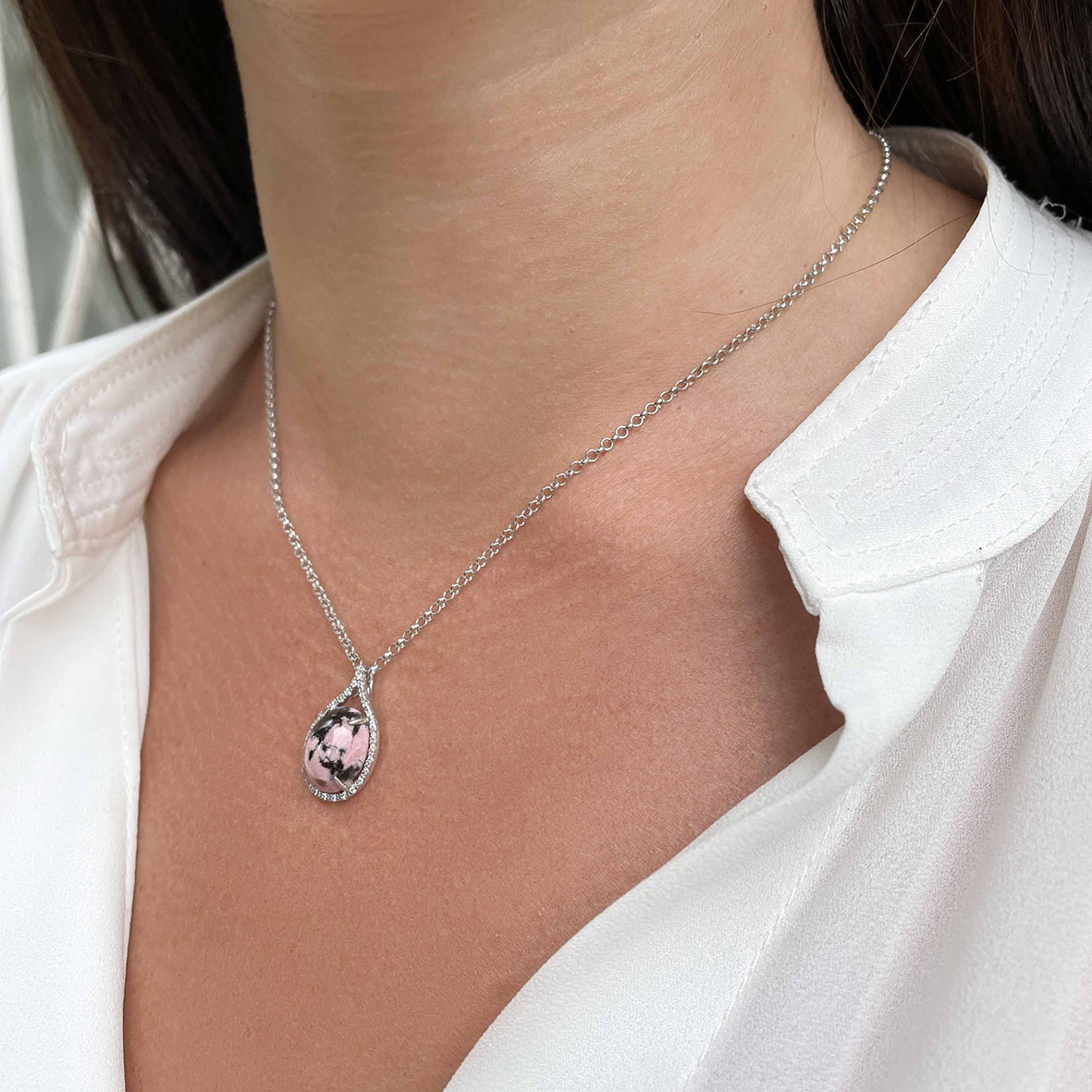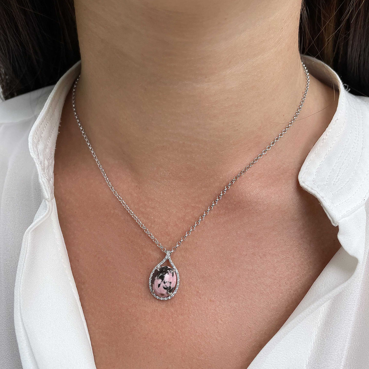Колье для женщин из серебра 925 пробы с родонитом,фианитами из коллекции Уральские самоцветы артикул 8340450194-45 от компании KRASNOE