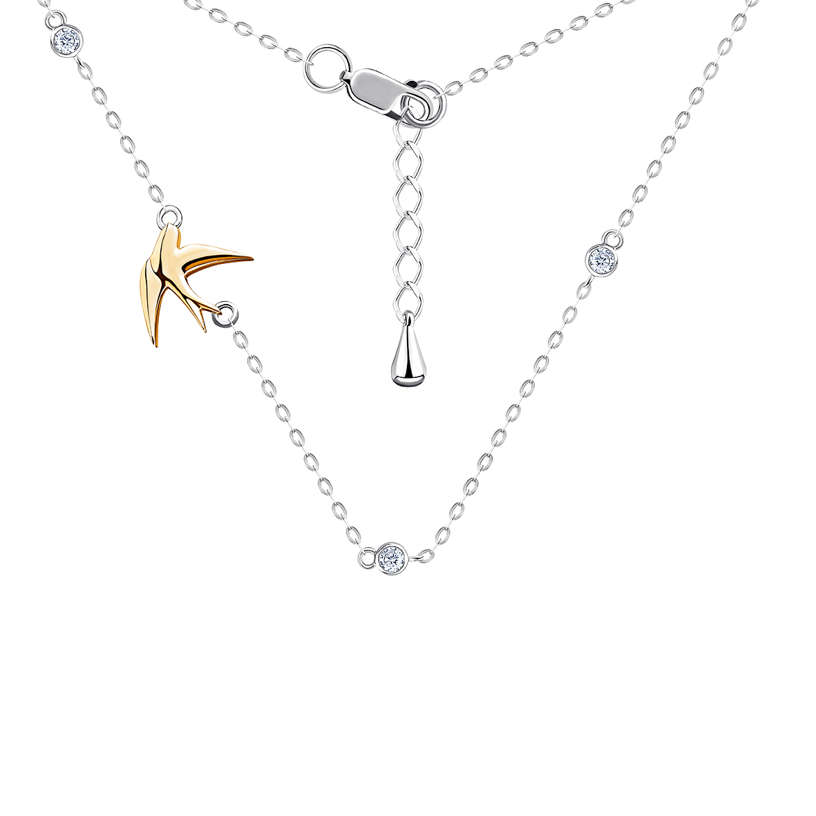 Колье для женщин из серебра 925 пробы с фианитами из коллекции Ласточка артикул 8350204875л-3-40 от компании KRASNOE