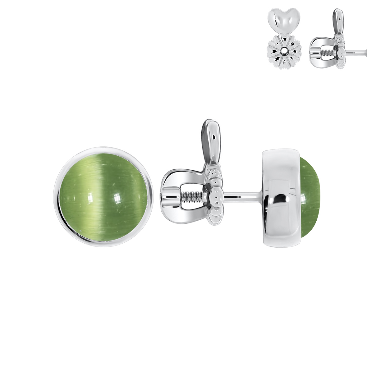 Пусеты для женщин из серебра 925 пробы с кошачий глазами из коллекции Уральские самоцветы артикул П340262780-60 от компании KRASNOE