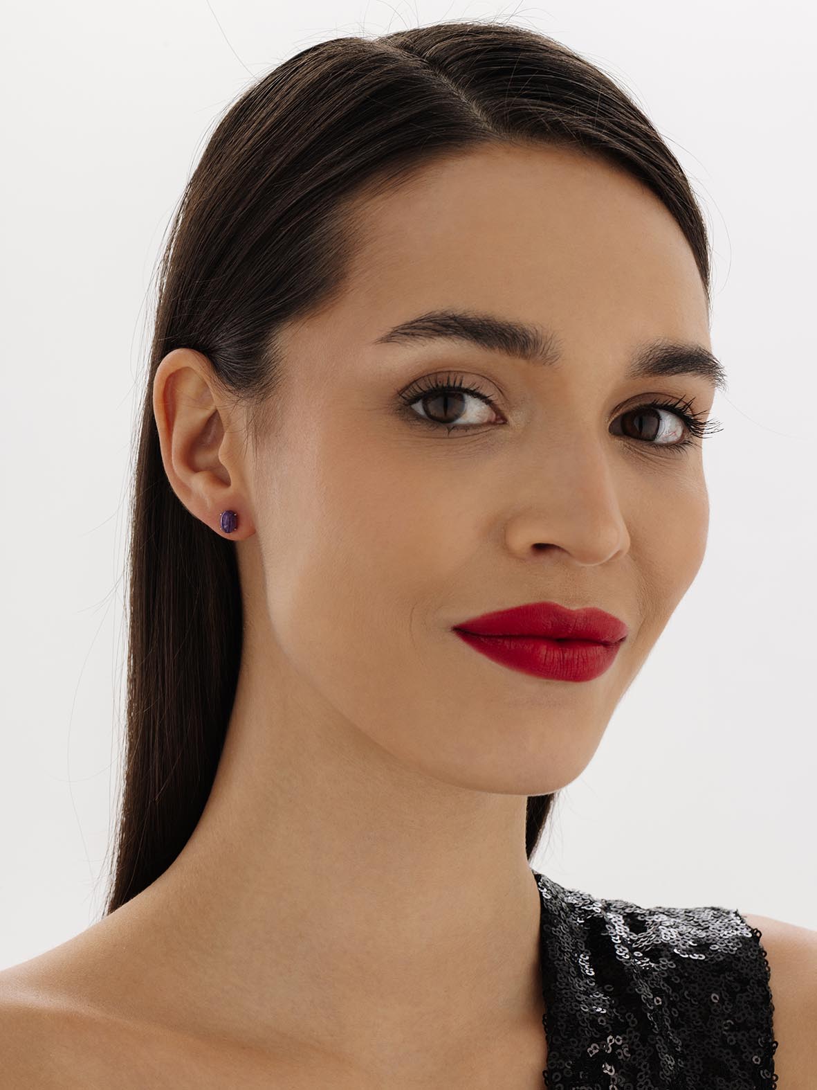 Пусеты для женщин из серебра 925 пробы с чароитами артикул 2340462320 от компании KRASNOE
