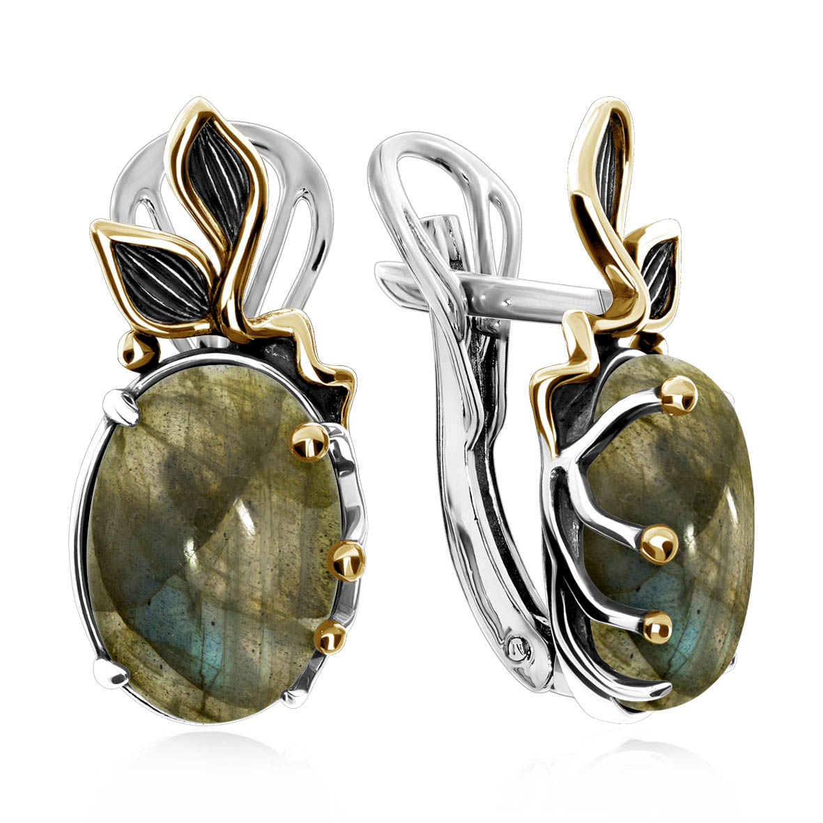 Серьги для женщин из серебра 925 пробы с лабрадоритами из коллекции Flowers (рабочее название) артикул 2317Л05167 от компании KRASNOE