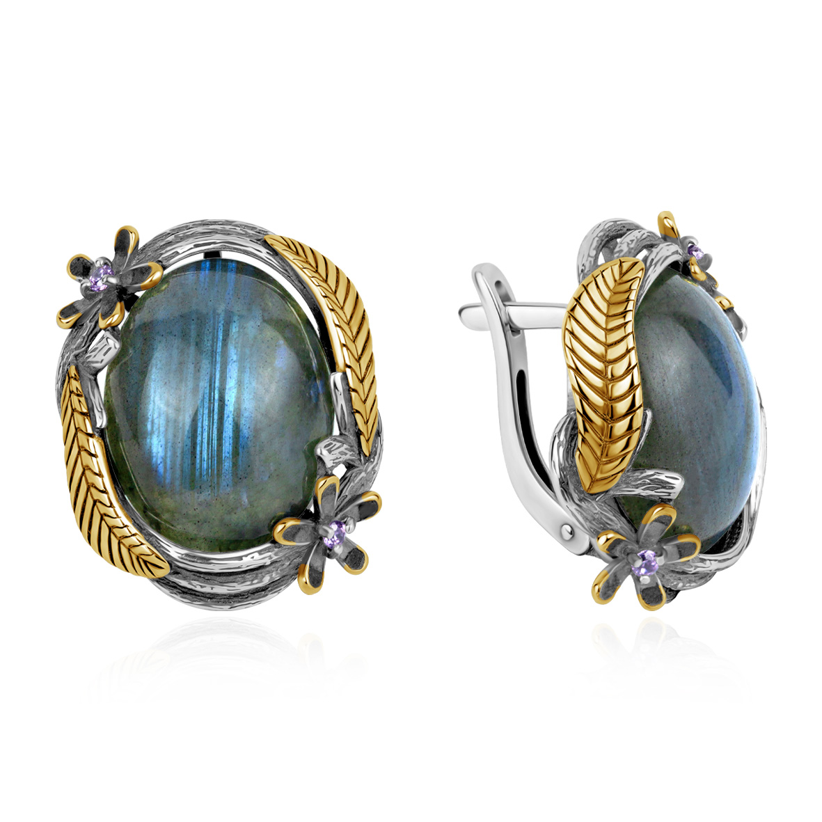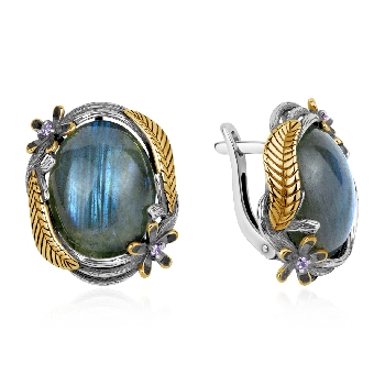 Серьги для женщин из серебра 925 пробы с лабрадоритами,фианитами из коллекции Flowers (рабочее название) артикул 2317Л05330 от компании KRASNOE