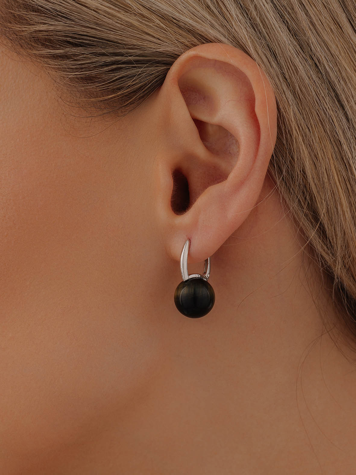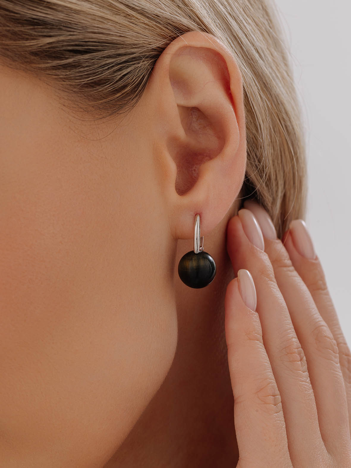 Серьги для женщин из серебра 925 пробы с соколиный глазами из коллекции Шанель артикул 2340СГ4318 от компании KRASNOE