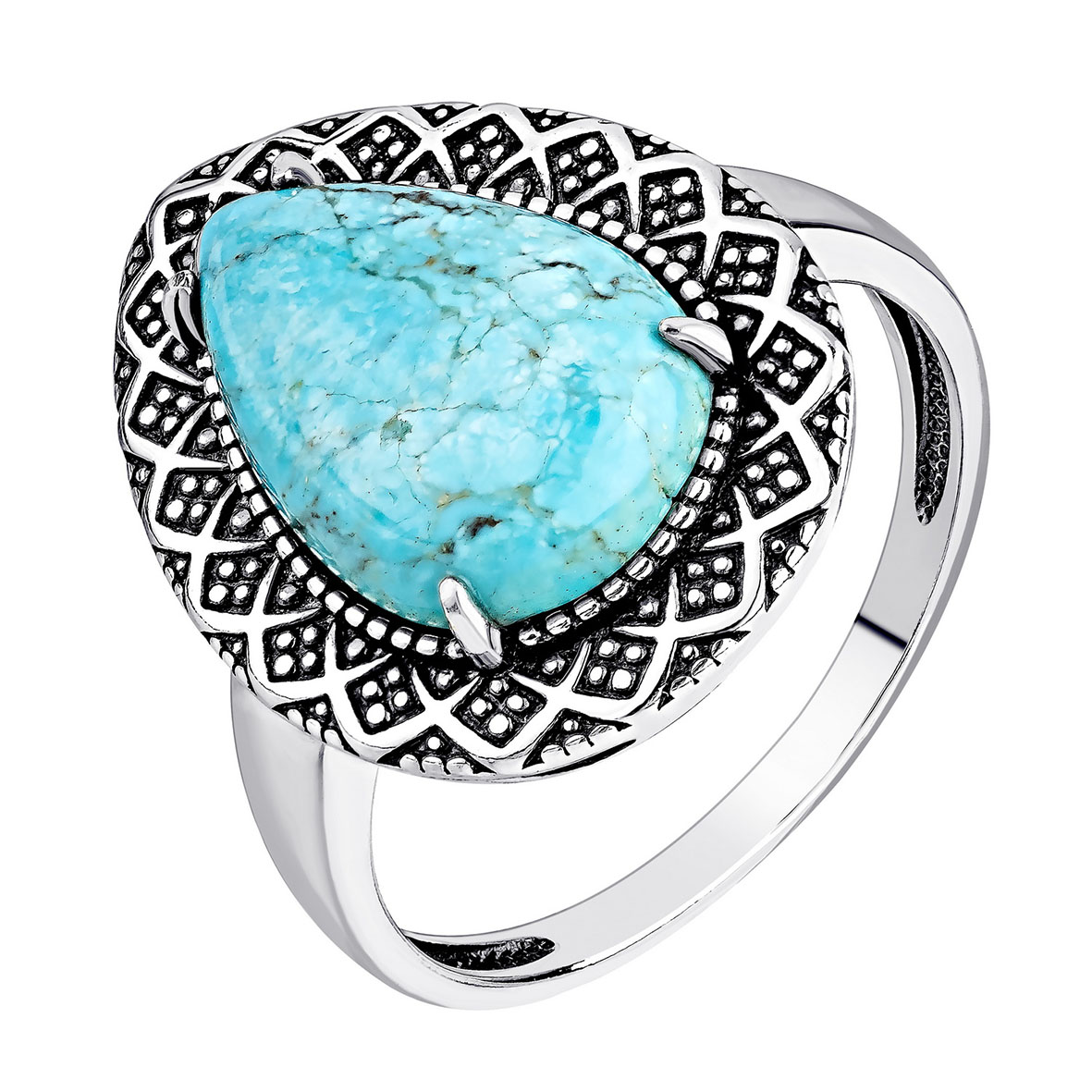 Кольцо для женщин из серебра 925 пробы с бирюзой из коллекции Уральские самоцветы артикул 1310315062 от компании KRASNOE