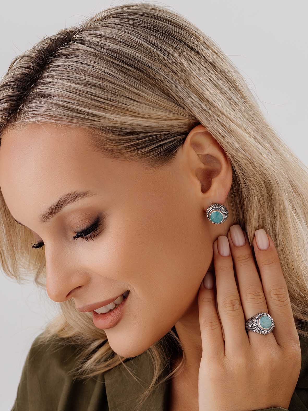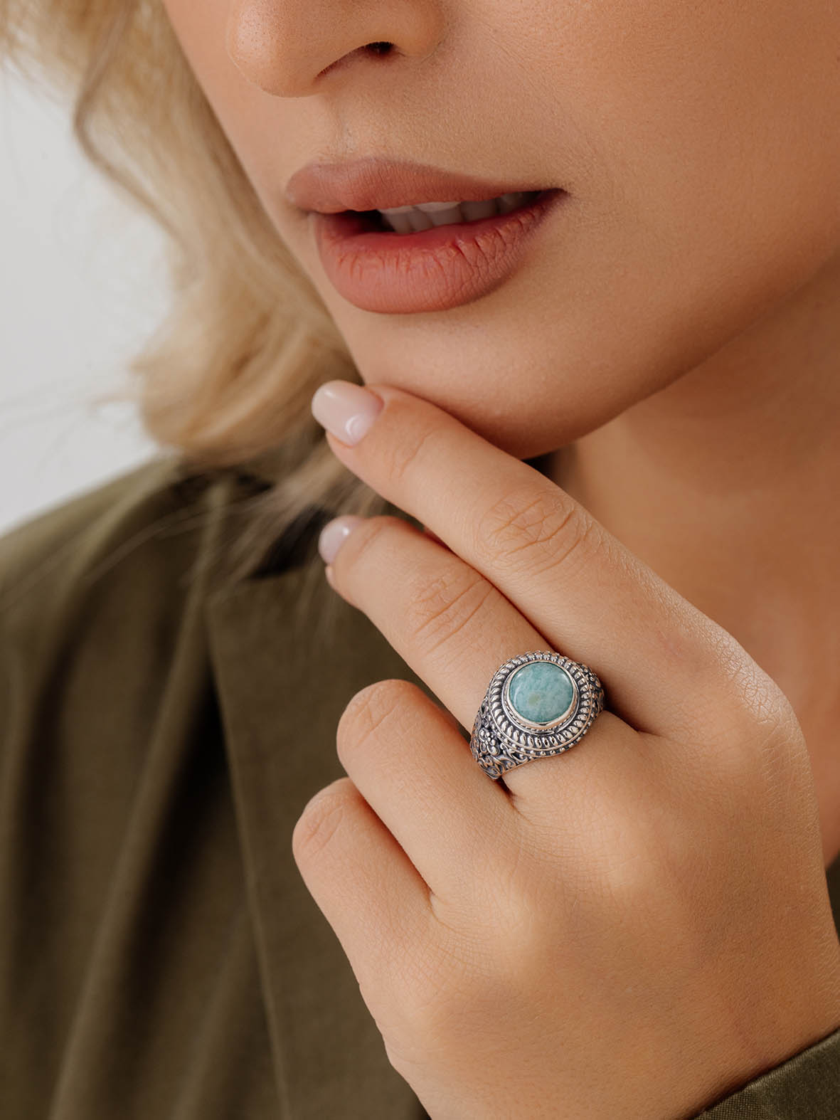 Кольцо для женщин из серебра 925 пробы с амазонитом из коллекции Династия артикул 1310371526 от компании KRASNOE