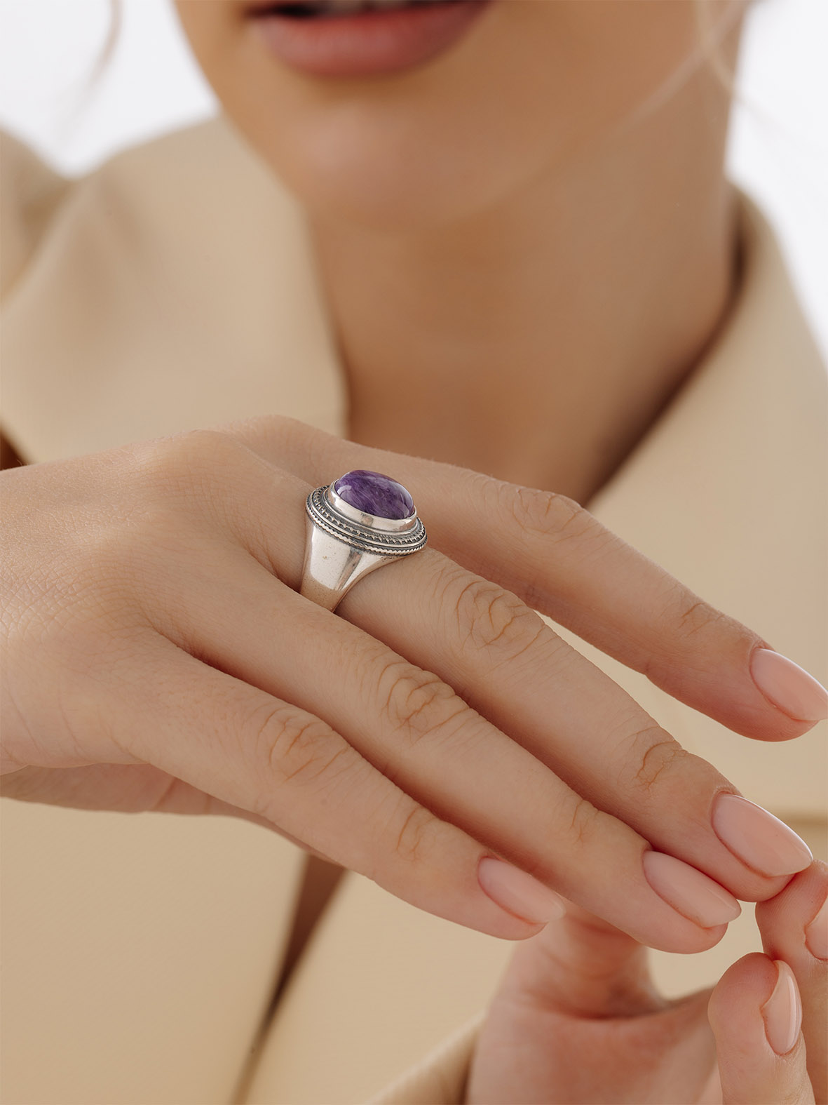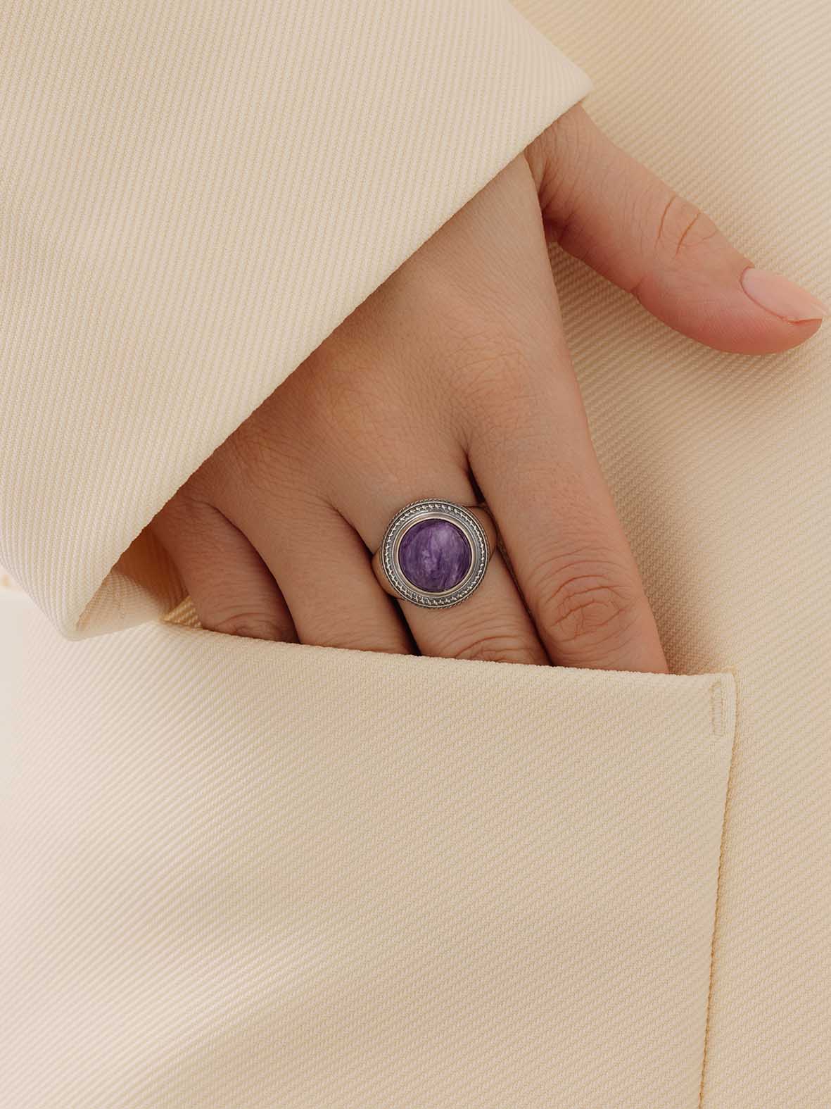 Кольцо для женщин из серебра 925 пробы с чароитом из коллекции Династия артикул 1310460954 от компании KRASNOE
