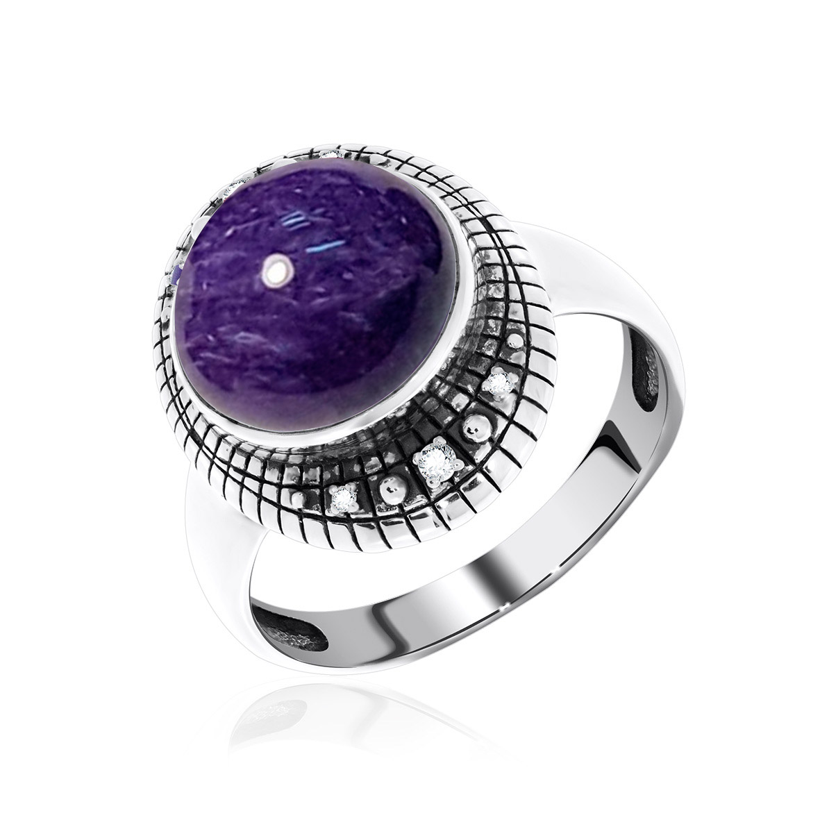 Кольцо для женщин из серебра 925 пробы с чароитом,фианитами из коллекции Династия артикул 1310460955 от компании KRASNOE