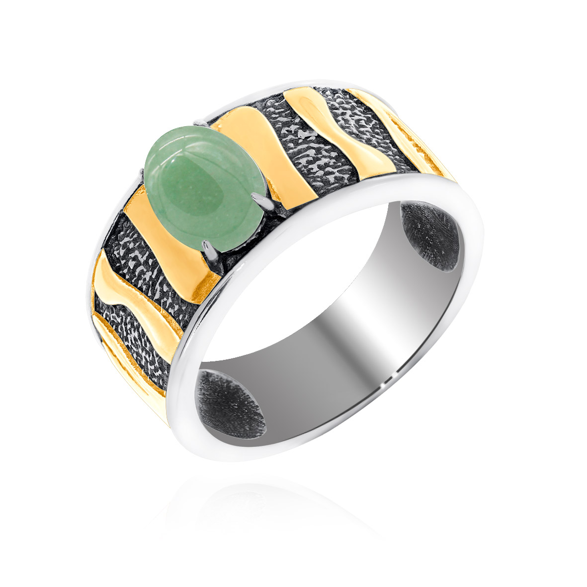 Кольцо для женщин из серебра 925 пробы с нефритом из коллекции Игра фактур артикул 1317351758 от компании KRASNOE