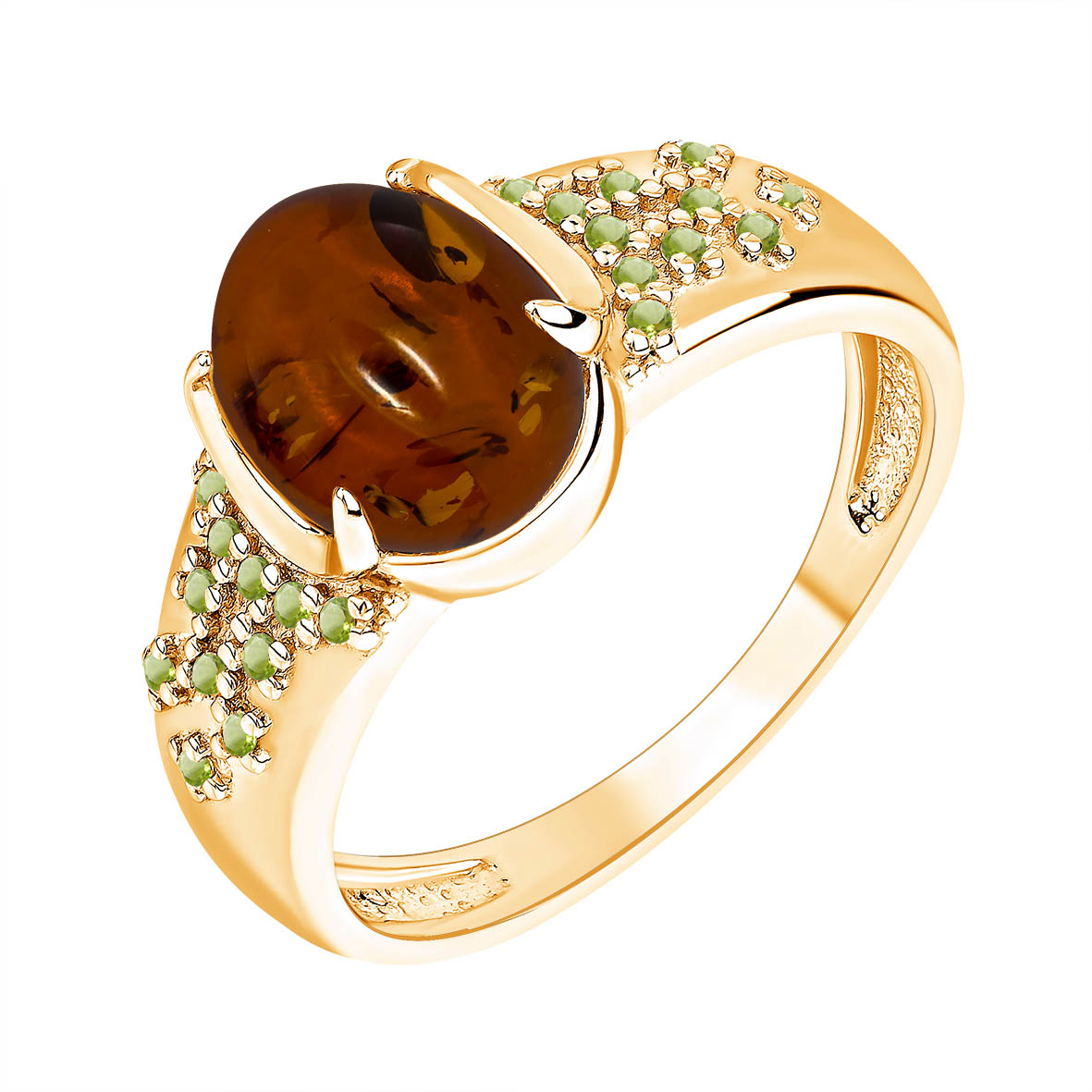 Кольцо для женщин из серебра 925 пробы с янтарём,ситаллами из коллекции Утренняя роса артикул 1320481969л-65 от компании KRASNOE