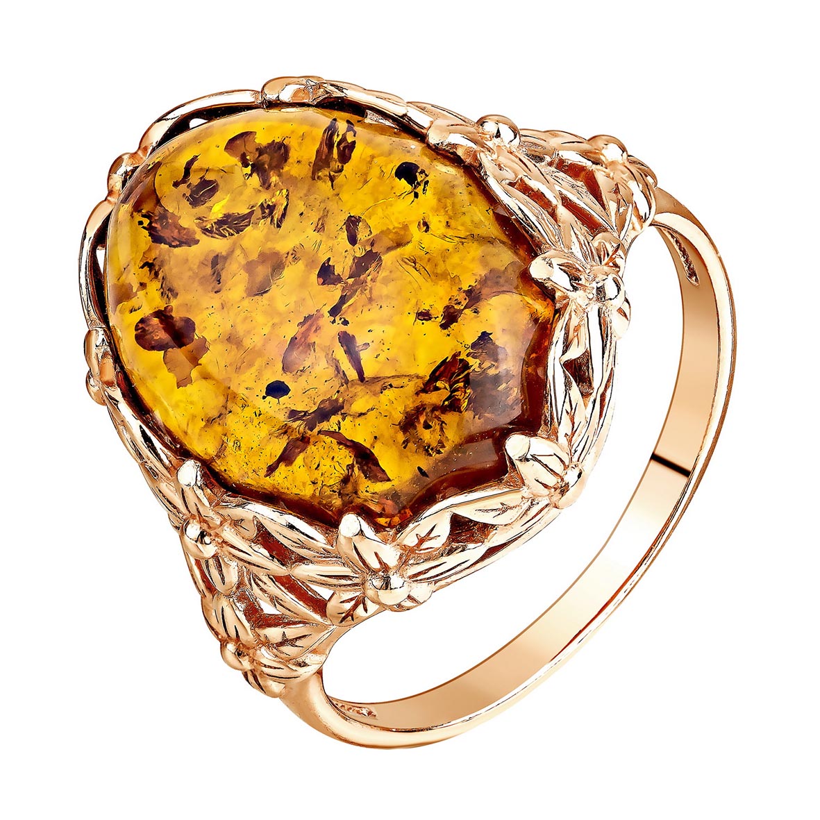 Кольцо для женщин из серебра 925 пробы с янтарём из коллекции Flowers (рабочее название) артикул 1320485095 от компании KRASNOE