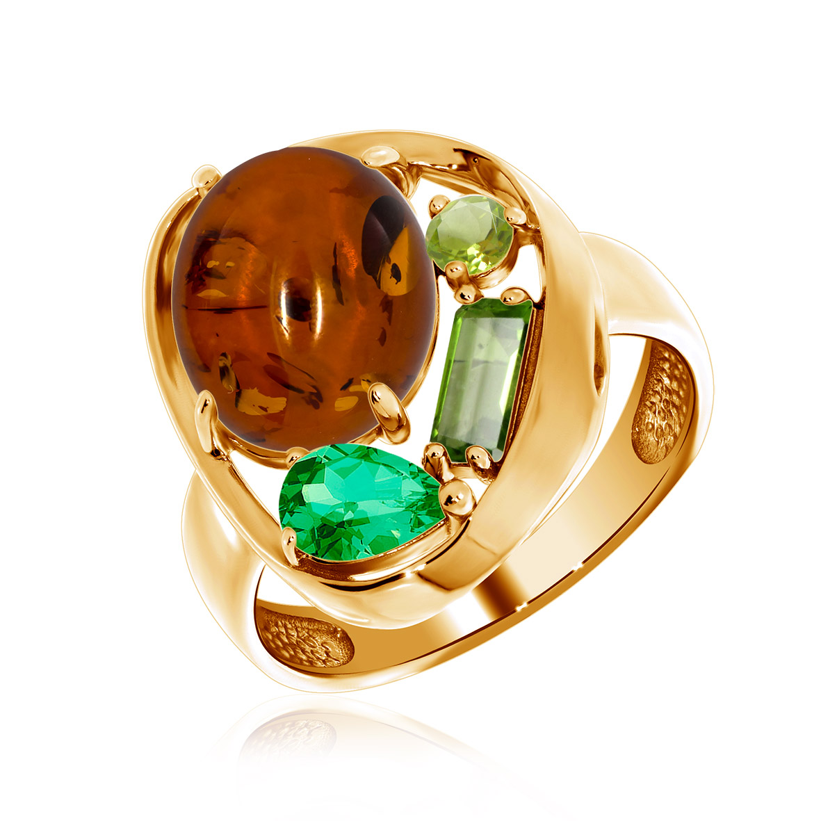 Кольцо для женщин из серебра 925 пробы с фианитом,янтарём,,ситаллами из коллекции Сладкая история артикул 1320861168-60 от компании KRASNOE