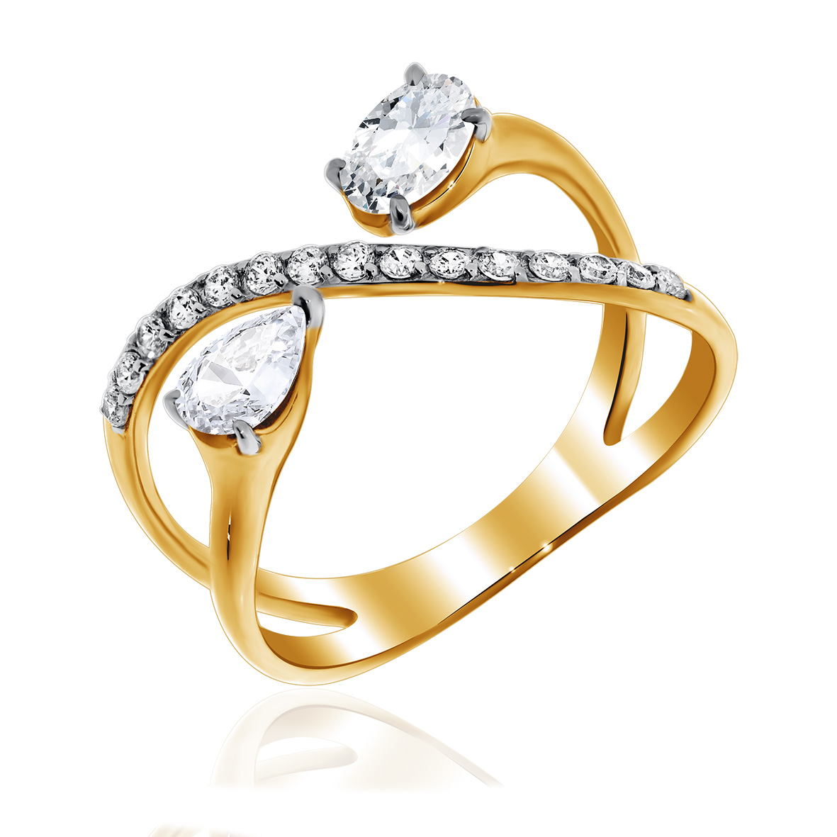 Кольцо для женщин из серебра 925 пробы с фианитами из коллекции Дуэт артикул 1329200288 от компании KRASNOE
