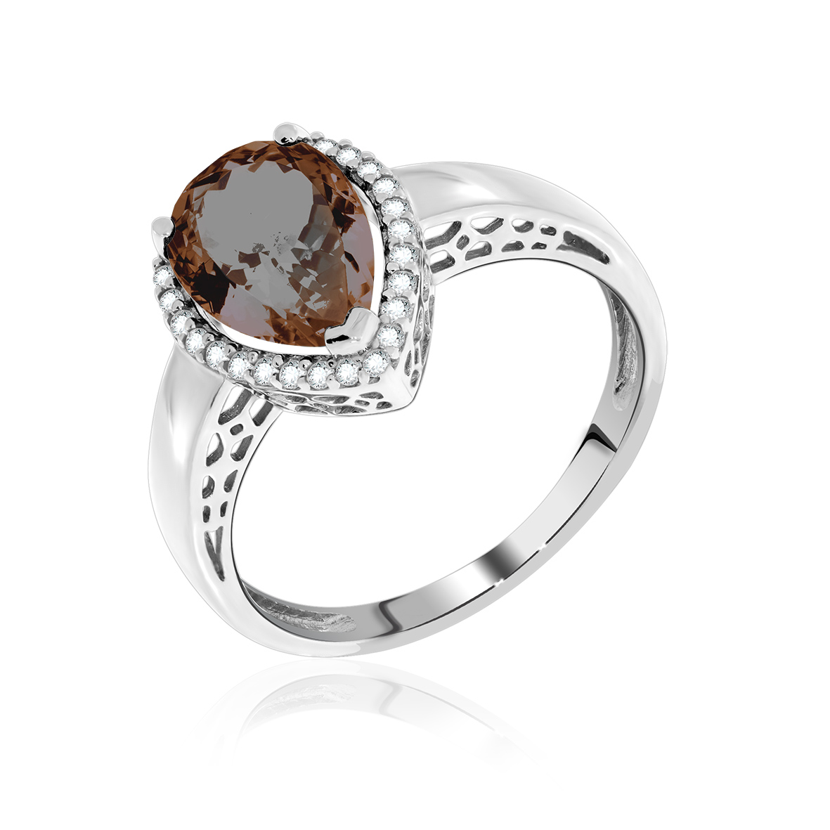 Кольцо серебро 925 пробы, покрытие родий, в необычном дизайне геометрической формы и вставкой Раухтопаз, заслужит Ваше внимание.