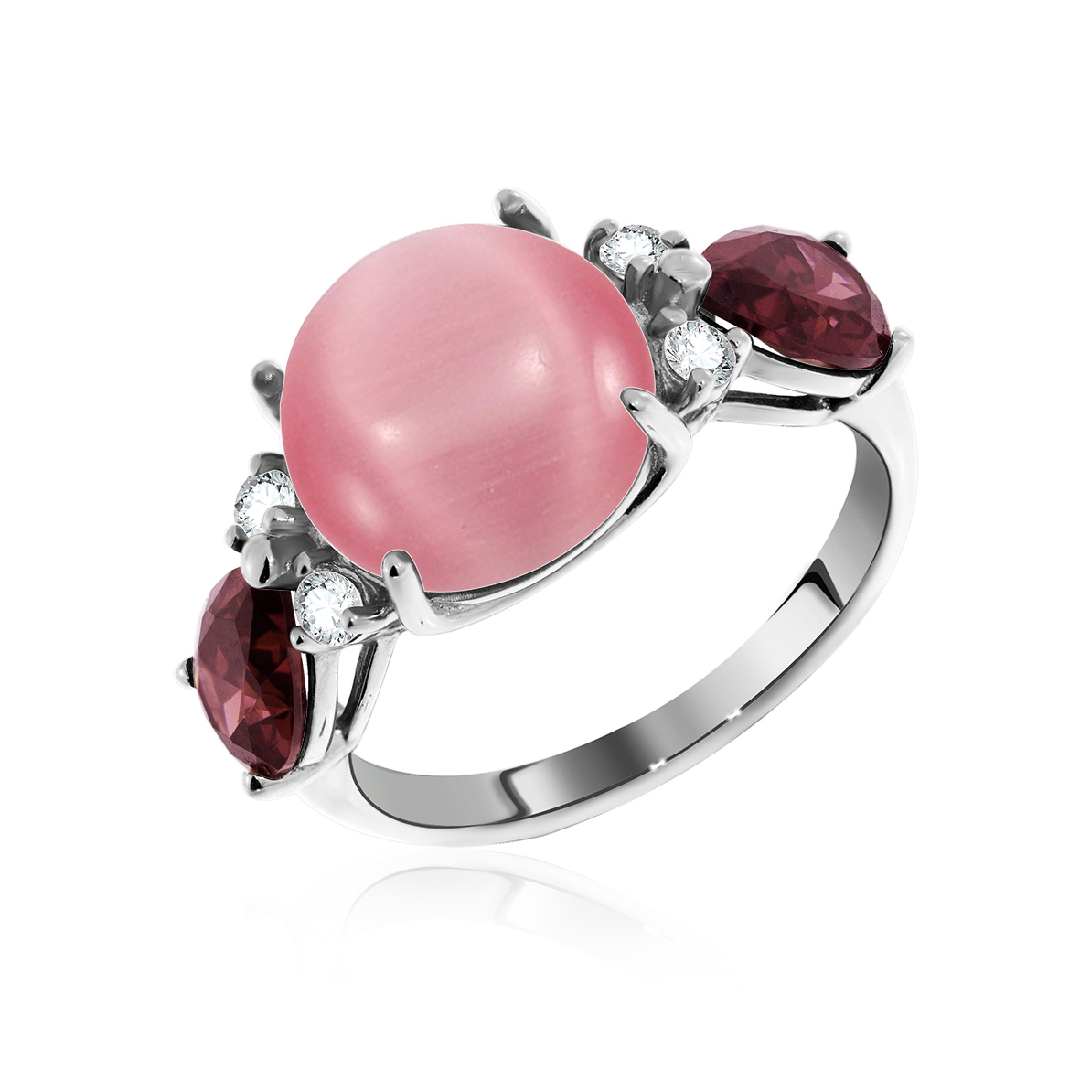 Кольцо для женщин из серебра 925 пробы с кошачий глазом,фианитами из коллекции Уральские самоцветы артикул 1340260935-30 от компании KRASNOE