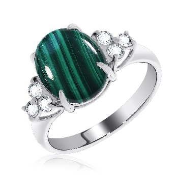 Кольцо для женщин из серебра 925 пробы с малахитом,фианитами из коллекции Уральские самоцветы артикул 1340380940 от компании KRASNOE