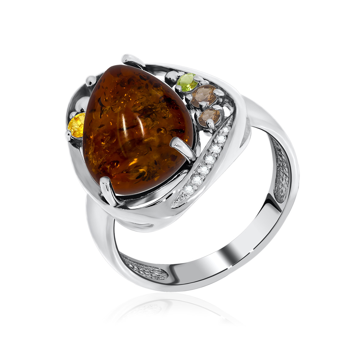 Кольцо для женщин из серебра 925 пробы с ситаллом,янтарём,,фианитами из коллекции Сладкая история артикул 1340861171-42 от компании KRASNOE