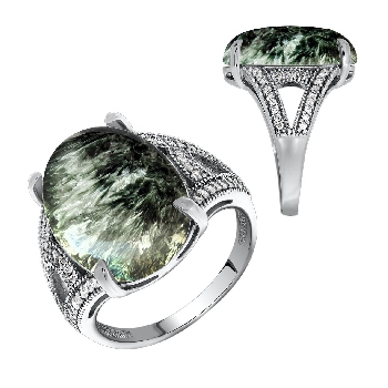 Кольцо для женщин из серебра 925 пробы с серафинитом,фианитами из коллекции Уральские самоцветы артикул 1340923537л от компании KRASNOE