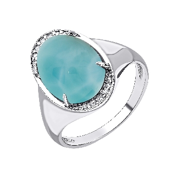 Кольцо для женщин из серебра 925 пробы с ларимаром,фианитами из коллекции Уральские самоцветы артикул 1340Л11968л от компании KRASNOE