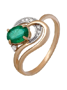 Кольцо для женщин из золота 585 пробы с изумрудом артикул 1910202502 от компании Алмаз-Холдинг