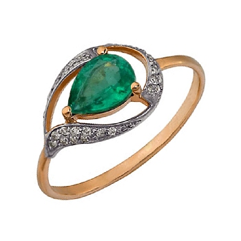 Кольцо для женщин из золота 585 пробы с изумрудом,бриллиантами артикул 1910202667 от компании Алмаз-Холдинг