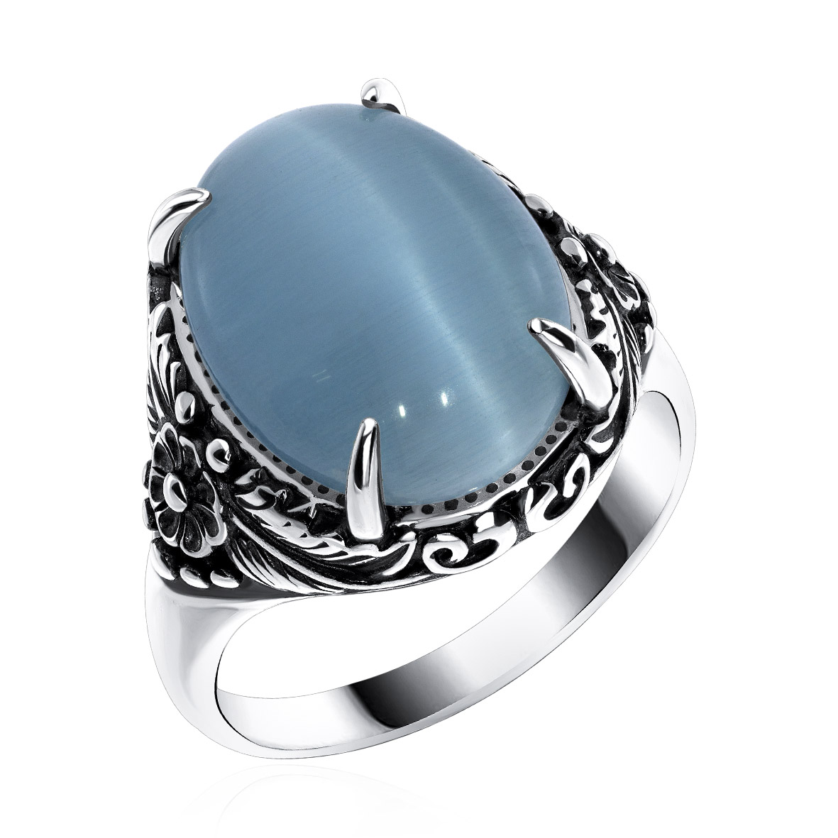Кольцо для женщин из серебра 925 пробы с имитацией кошачьего глаза из коллекции Flowers (рабочее название) артикул 1310265714-70 от компании KRASNOE