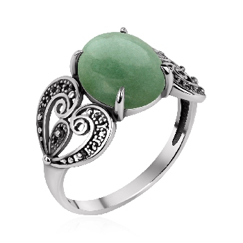 Кольцо для женщин из серебра 925 пробы с авантюрином из коллекции Филигранная (рабочее название) артикул 1310366370-1 от компании KRASNOE