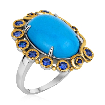 Кольцо для женщин из серебра 925 пробы с бирюзой,ситаллами артикул 1317Б25324 от компании KRASNOE