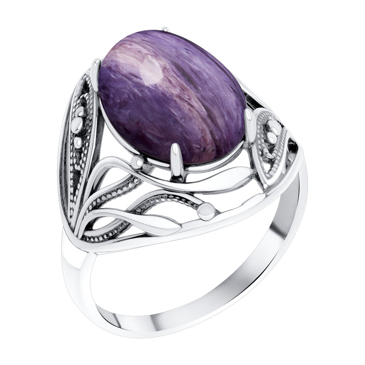Кольцо для женщин из серебра 925 пробы с чароитом из коллекции Филигранная (рабочее название) артикул 1310465765 от компании KRASNOE